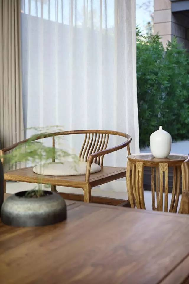 清雅竹元素,新中式家具運用天然花梨木材質(zhì),塑造出精簡(jiǎn)造型。